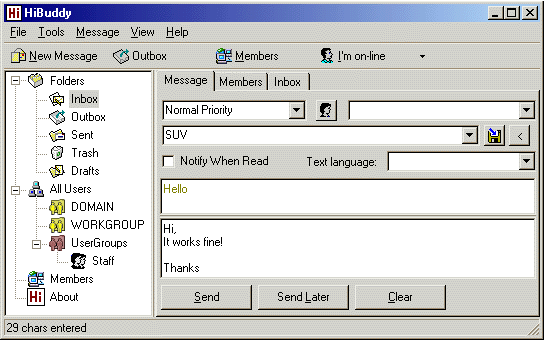 HiBuddy checks readiness of the addressee and send message if it ready. If he's out, HiBuddy will continuously it and send the message when user will ready.