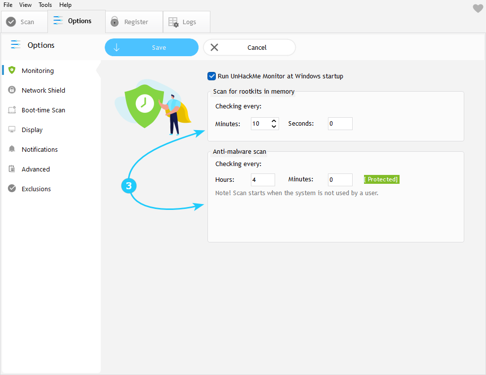 !UnHackMe provides real-time protection through scheduled background scans. This guide will help you configure monitoring intervals and understand how scanning works to keep your system secure.