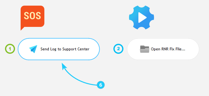 4. You can either Send Log File to Support Center (recommended option) or Execute RNR File Received from Support that was sent to you.