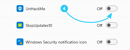 - If the icon disappears, run unhackmeschedule.exe as Administrator (default path: "C:\Program Files (x86)\UnHackMe\"), then restart your PC.