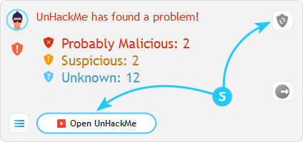 - Click on the UnHackMe Monitor icon to display the current status of the system. You can click Open UnHackMe to launch the main interface. Clicking the blue shield icon will make UnHackMe rescan the system.