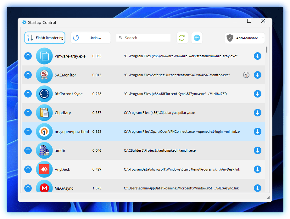 Improve Windows boot time with Startup Control.See how much time takes execution of startup programs. |