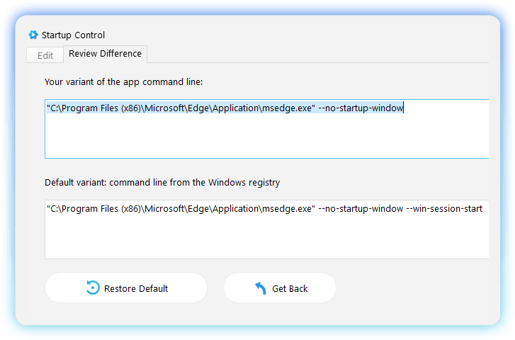 ДОбавлена возможность редактировать командную строку приложений с помощью Startup Control.