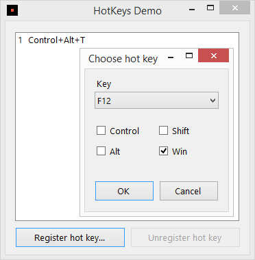 This component supports system-wide hot keys and allow to register and unregister shortcuts and track hot key pressing. To use just register shortcut as new hot key: