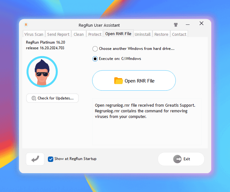 Regrunlog.rnr is a common text file and you can open it using notepad for learning and printing.