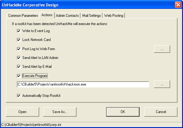 Click on the OK button to save settings and close UnHackMe Corporative. This will create the "corp.ini" file in the UnHackMe Corporative folder.