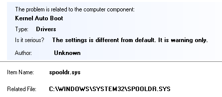 I discovered the contents of the "tcpip.sys" and found the string "spooldr.sys" in the end of the file.