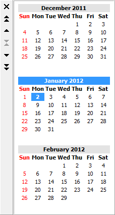 Calendar Toys' Calendar is a three-months scrollable automatical calendar which displays the current, previous and next month and has special navigation buttons those allow to see any date in past and future.